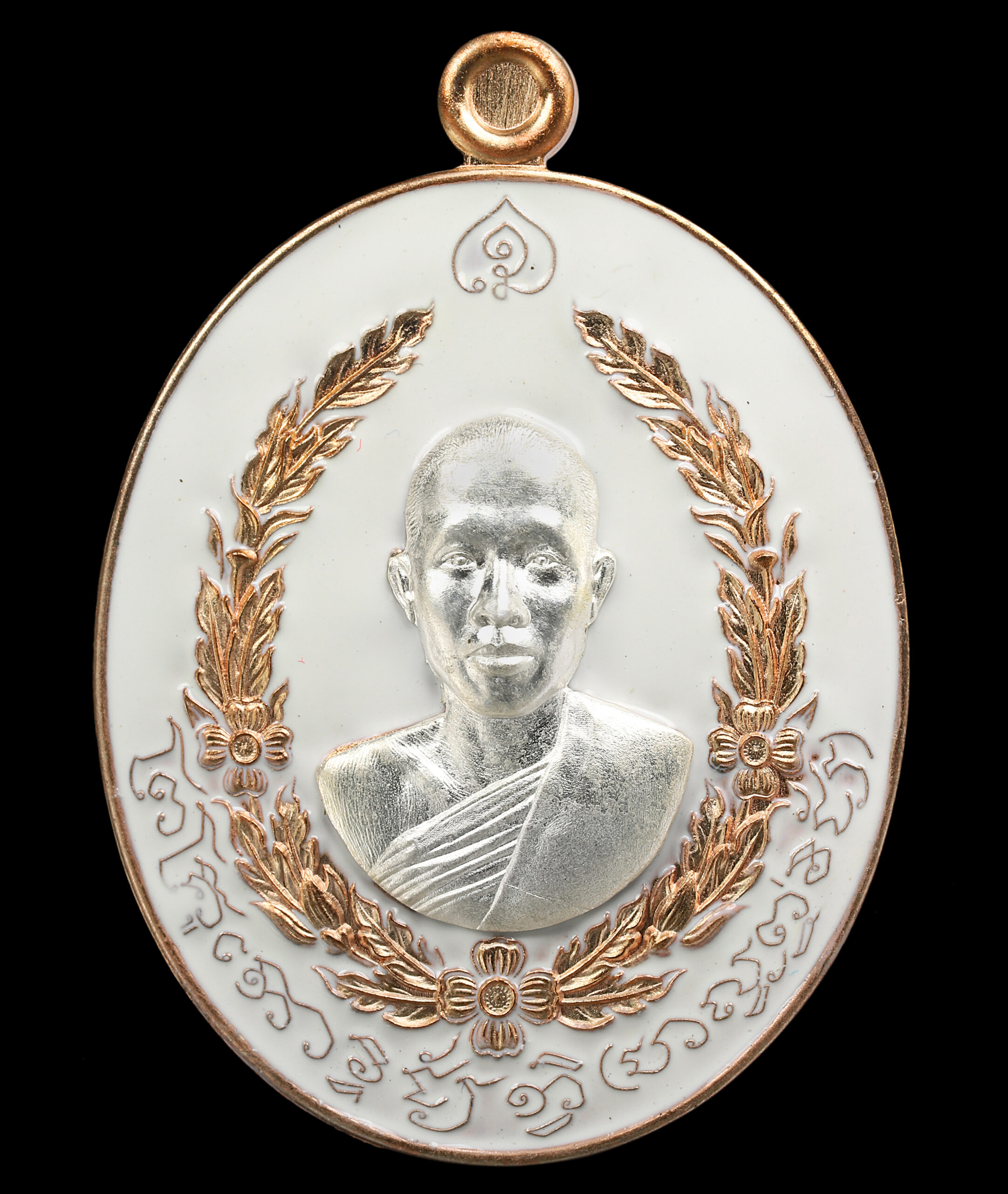 Material: Nawa alloy with silver mask and white enamel