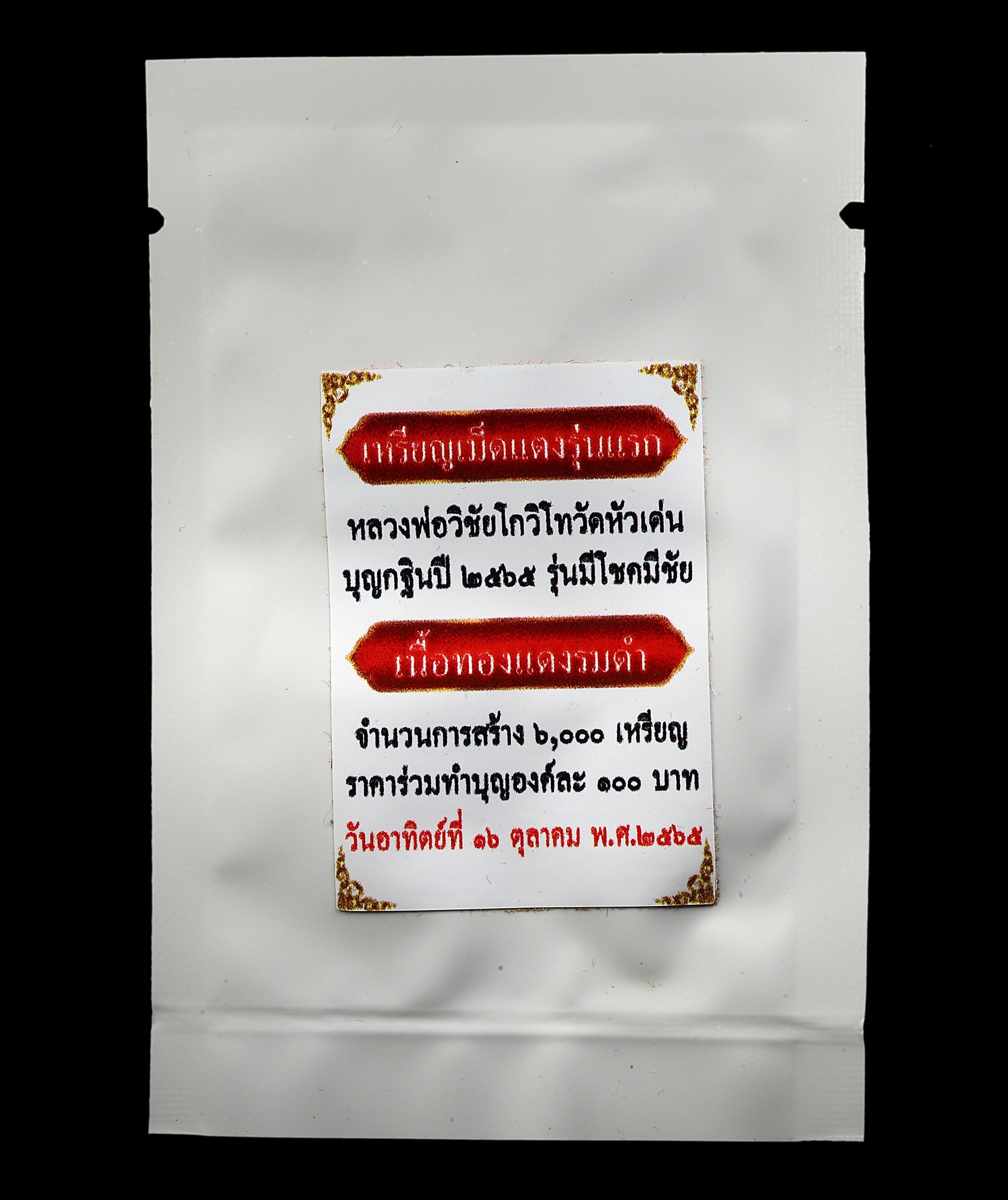 More Information : This amulet is highly revered for its powerful blessings in attracting luck, wealth, and prosperity. Consecrated over a full 3-month Trimester Ceremony in B.E. 2565 (2022)